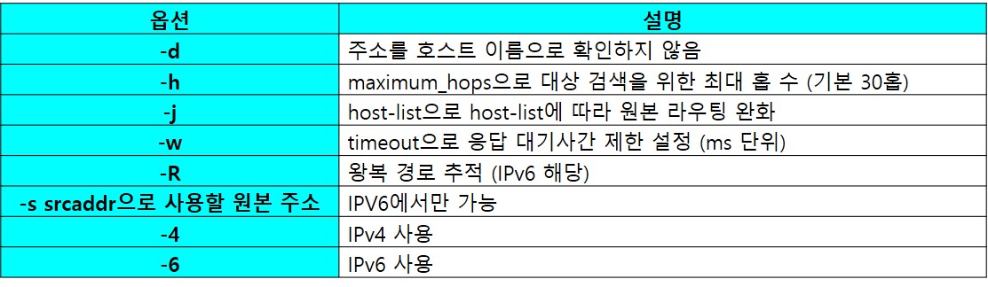 > 명령어를 실행하는 컴퓨터에서 목적지 서버로 가는 네트워크 경로를 확인해주는 명령어